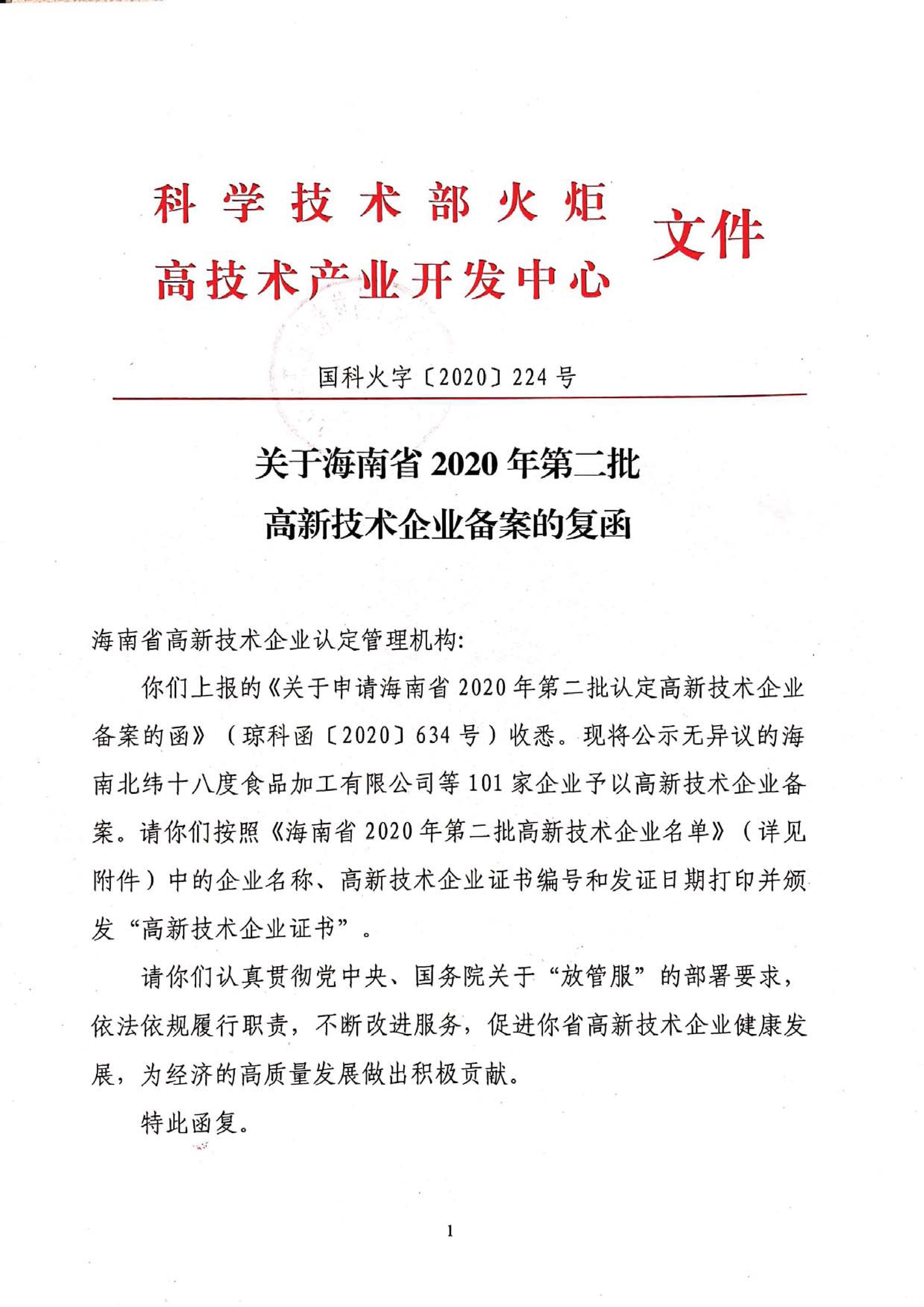 ¿ËÈÕ£¬¾¹ú¼Ò»ð¾æÖÐÐĹ«Ê¾¡¢ÌìϸßÐÂÊÖÒÕÆóÒµÈ϶¨ÖÎÀíÊÂÇéÏòµ¼Ð¡×é°ì¹«ÊÒÅú¸´£¬º£ÄÏÊ¡×ðÁú¿Ê±Ô°ÁÖ¿ª·¢ÓÐÏÞ¹«Ë¾Í¨¹ý¹ú¼Ò¸ßÐÂÊÖÒÕÆóÒµ×ʸñÈ϶¨¡£...